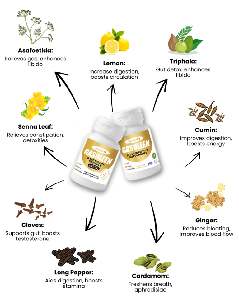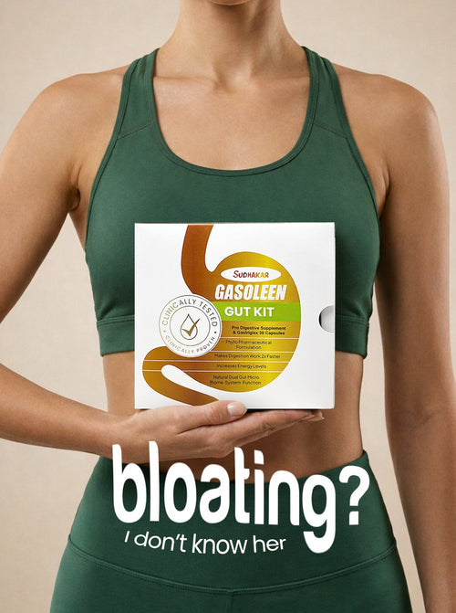 The Sudhakar Gasoleen Gut Kit is formulated for individuals experiencing chronic acidity, gas, bloating, slow digestion, and post-meal discomfort. It combines Gastriglex with pre-digestive metabolic support to aid digestion before and during meals.